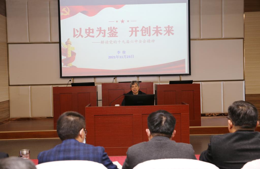 校长李俊为我院和数学与统计学院教师宣讲党的十九届六中全会精神