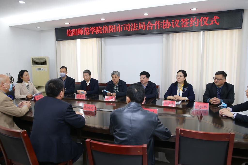 李俊与饶祖明共同为信阳师范学院大学生校外实践教育基地揭牌,双方代表分别签署交换《信阳师范学院信阳市司法局共建研究生联合培养基地协议》《信阳师范学院英国上市公司365 信阳市法律援助中心共建河南省高校新文科(法学)大学生实践教育基地协议》。随后,李俊前往信阳市司法局公共法律服务中心、记忆馆和指挥中心参观交流,双方围绕人才培养、科学研究和社会服务等方面,就进一步拓展校地合作领域进行了深入探讨。