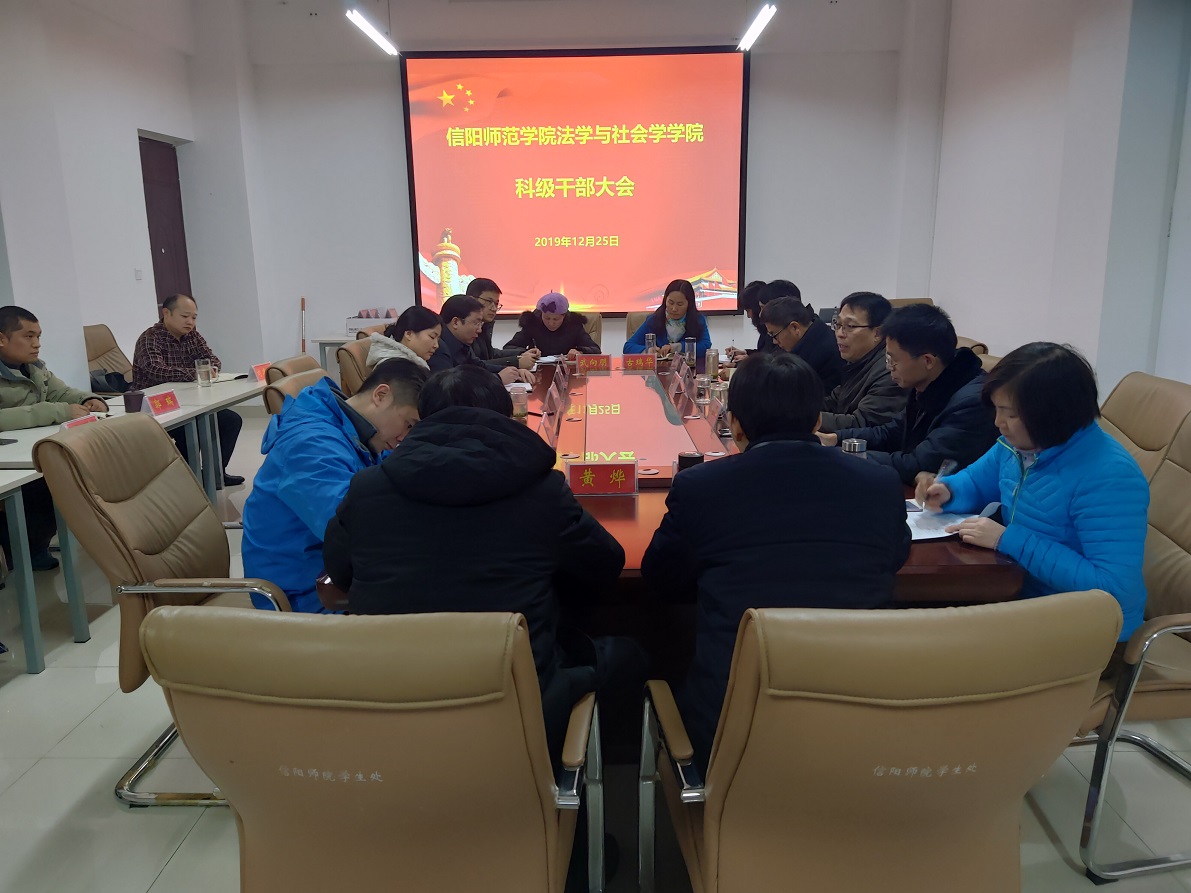 时间:2019-12-26 17:57 来源: 作者:武向朋 阅读: 次12月25日,法社学院召开科级干部大会,激励科级干部以高昂的激情和干劲勇当为师生服务的一线指挥员、战斗员,做建设高水平师范大学排头兵,加快推动法社学院高质量发展。法社学院党委书记王文华、院长李文发出席并讲话。全体科级干部参加会议。副院长贾义保主持会议。