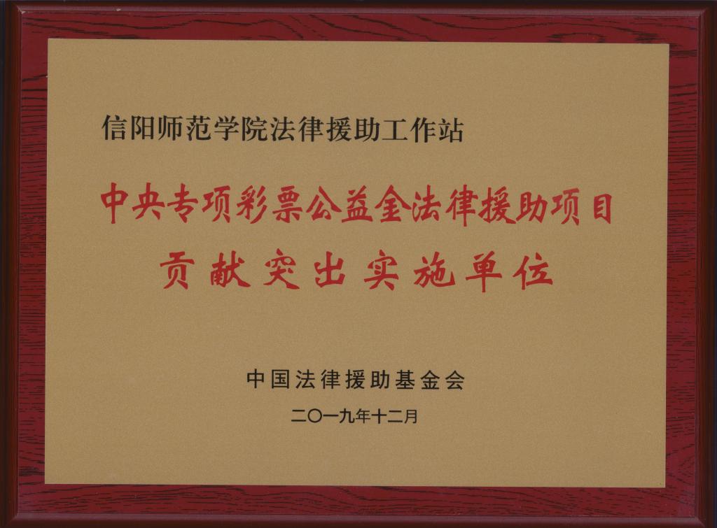我校法律援助工作站荣获中央专项彩票公益金法律援助项目贡献突出实施单位