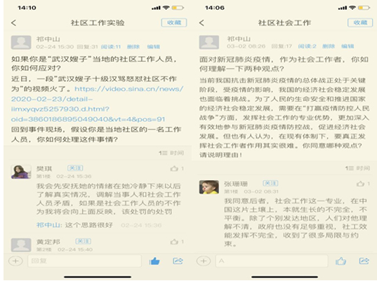 社会即课堂,生活及教育。线上教学中社会工作系教师不是简单的把教室教学搬到网上,而是把疫情、灾难变成教材,将疫情防控融入专业课程教育,运用疫情防控中的鲜活案例,讲好课程思政,树立学生正确积极向上的人生观、价值观,培养学生的专业自信,增强了育人时效。(社会工作系 供稿)