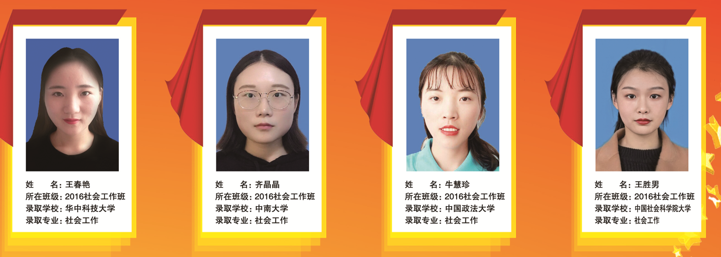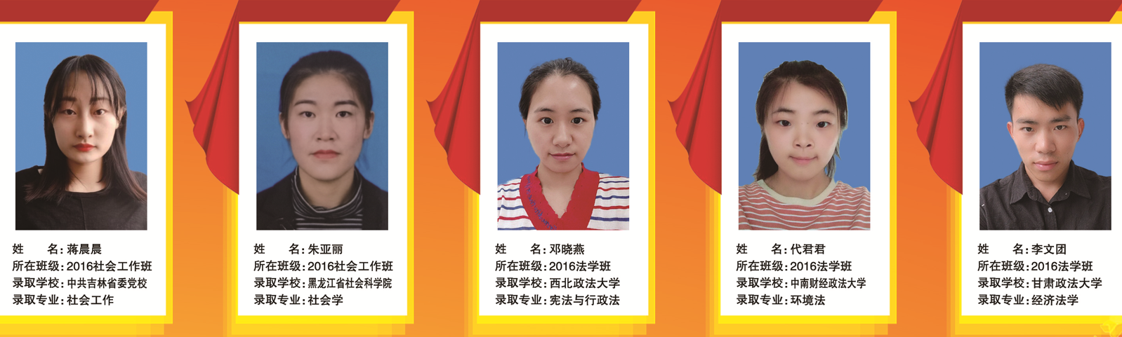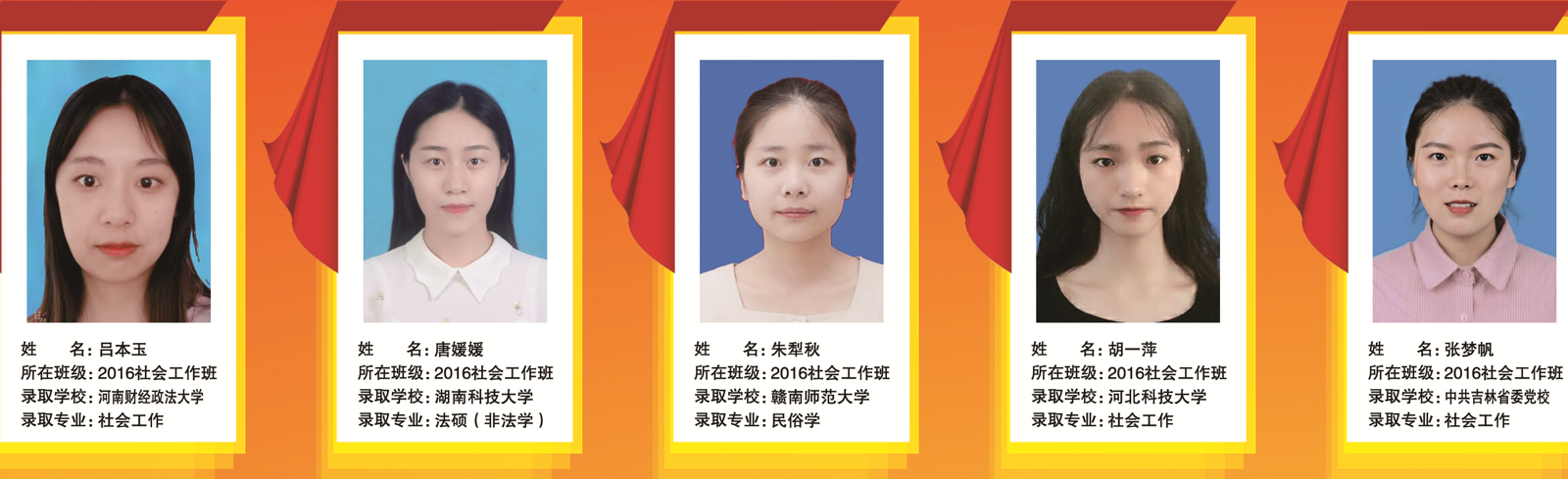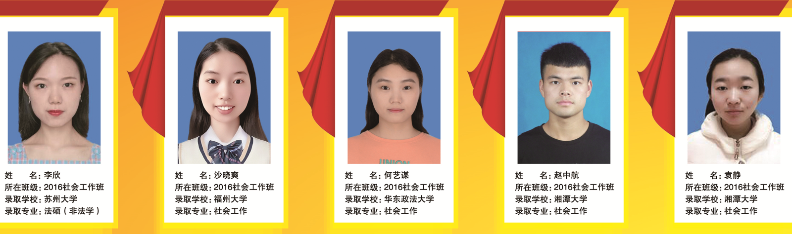 一分耕耘,一分收获。法社学院2020届毕业生总人数为156人,53名同学在2020年全国硕士研究生招生考试中脱颖而出,多数同学成为了双一流大学的硕士研究生,获得了继续深造的机会。全院录取率为33.7%,为历年来最好成绩。其中,法学专业有13名同学被录取,录取率达16.25%,社会工作专业有40名同学被录取,录取率达52.63%。