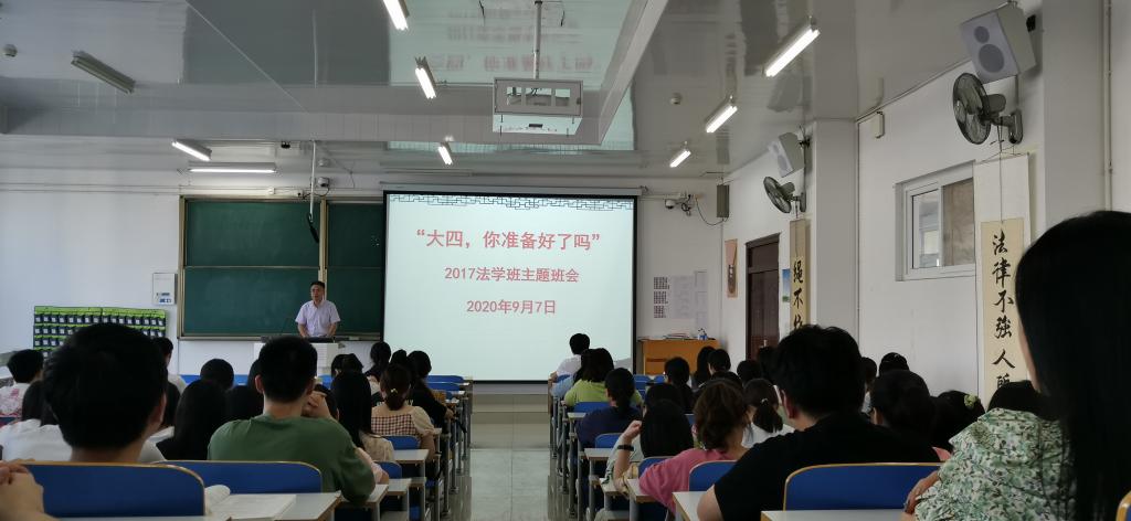 为强化学生生命健康安全教育、保障疫情防控常态化下教学工作的顺利进行,法社学院组织各班召开了《开学第一课》主题班会。法社学院党委书记王文华主持召开了2017法学、2017社会工作两个毕业班《大四,你准备好了吗》主题班会。班子成员深入班级与同学们就报考研究生、报考公务员、如何实现高层次就业等学生关注的热点问题与同学们进行了交流。