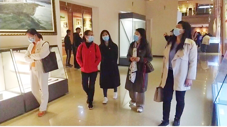 在鄂豫皖革命纪念馆前,全体齐唱中华人民共和国国歌,向为了民族的解放而牺牲的英烈们默哀一分钟。在四史优秀作品展演中,李浩然、周波朗诵了《一心跟党走,接力新时代》,康宇为大家讲述人物事迹—《英雄无畏,捍卫疆土》。新时代合唱团《唱支山歌给党听》的爱党爱国歌声响彻天空。最后,大家集体参观了鄂豫皖革命纪念馆。
