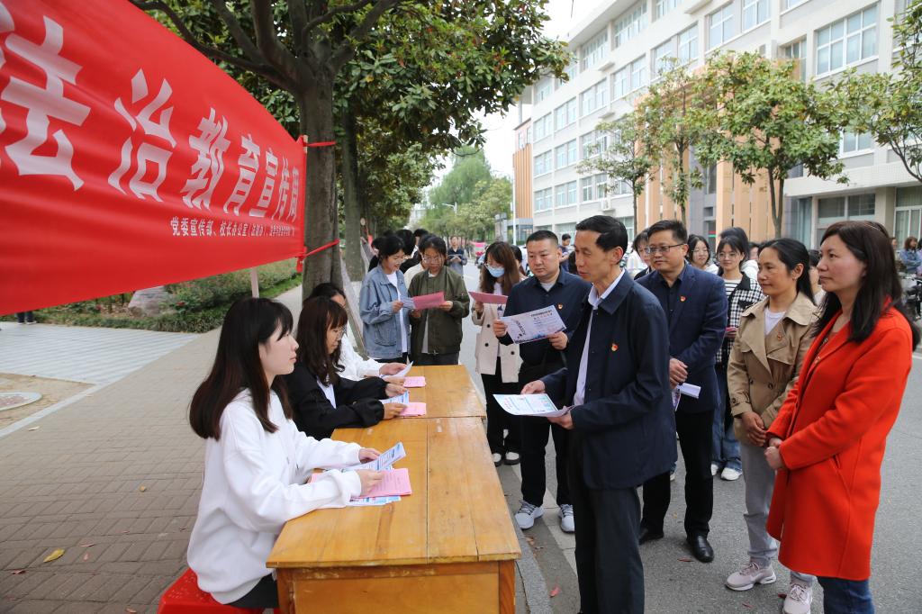 岳宗德一行在现场观看了法治展板、横幅和宣传页,与参加普法宣传的师生进行了交谈。他对我校的法治教育宣传周活动提出三点要求:一要高度重视,强化认识。开展校园法治宣传教育活动,对于我们加强法治校园建设和清廉校园建设,进一步增强广大师生法治观念,弘扬社会主义法治精神,引导师生做社会主义法治的忠实崇尚者、自觉遵守者、坚定捍卫者,具有重要意义。二要坚持以习近平法治思想为引领,坚持立德树人这个根本,落实全省教育系统“八五”普法规划,开创校园法治宣传教育新格局,推动我校校园法治教育走深走实。三要结合实际,增强法治宣传教育的针对性和实效性。要结合当前宪法教育、国家安全教育、大学章程宣传、防范电信诈骗等重点,以广大师生喜闻乐见、丰富多彩的形式开展校园法治宣传活动,引导广大师生牢固树立法治意识、规则意识,提高明辨是非的能力,将法治精神内化为精神追求,外化为自觉行动,提升大家运用法治思维和法治方式解决问题的能力。