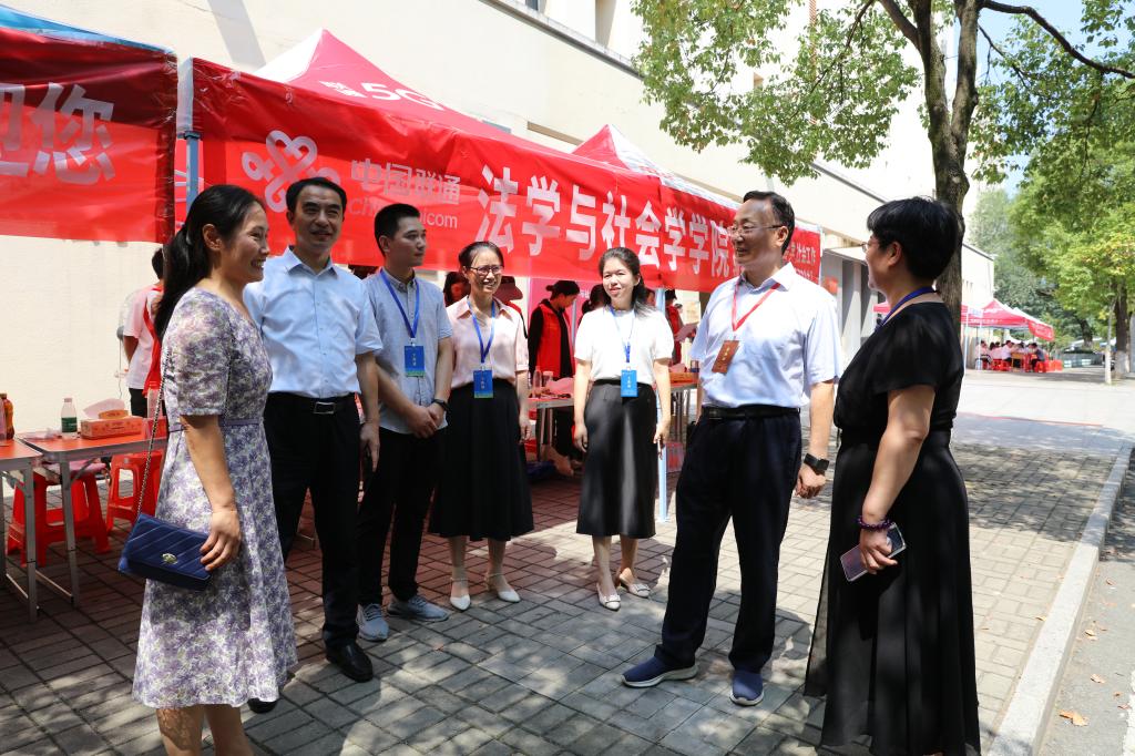 学籍、转专业等咨询的“一站式”服务,确保新生无忧入学。学校、学院领导与前来报道的新生和家长进行亲切交