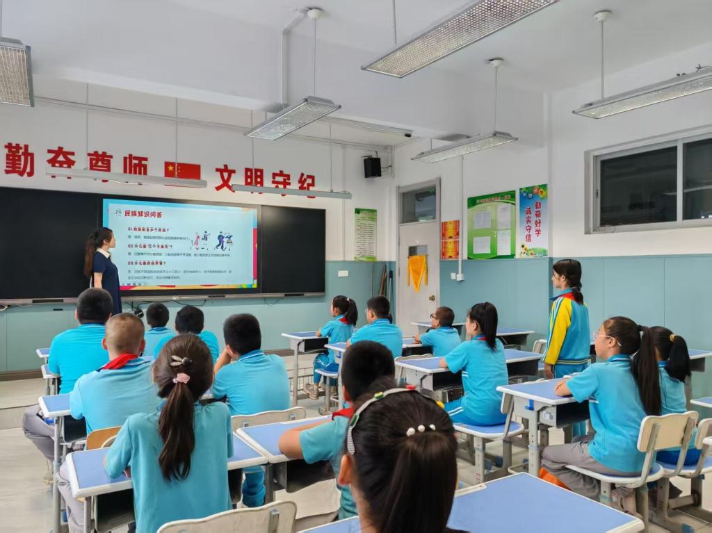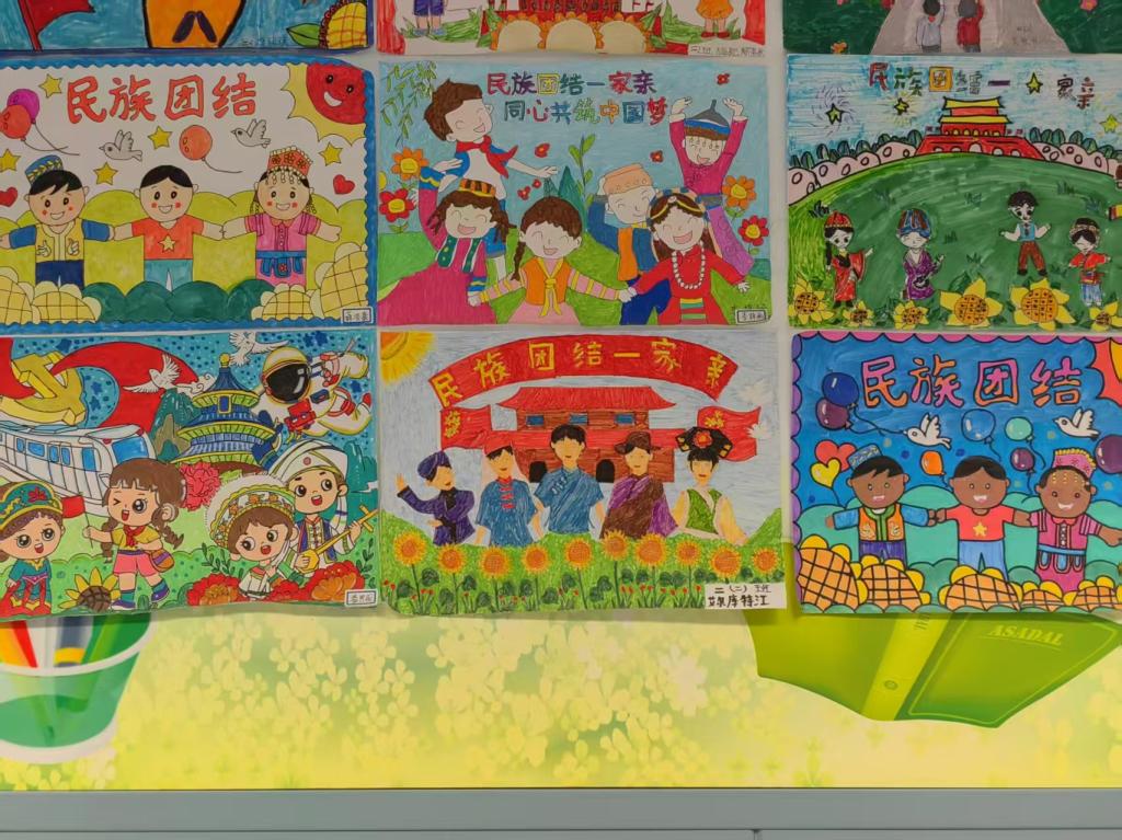 建党节当天,实践团成员带领学生齐唱《没有共产党就没有新中国》,在激昂的旋律中激发爱国热情,增强民族自豪感。随后的座谈会中,实践团同当地教师深入交流,围绕教学资源共享、活动落地及民族团结教育融入课堂等议题展开研讨;在“石榴籽心连心,团结之花绽放校园” 民族团结主题课堂,成员们以幻灯片和短视频展示365英国上市风貌,分享与多民族同学相处经历,并结合 “豫疆情深,感恩成长路” 河南援疆成果展,介绍河南援建该校食堂、体育馆等设施情况,凸显援疆工作对教育质量提升的重要作用;在“团结杯竞智赛,民族知识我最棒” 知识竞赛中,学生积极参与课堂问答、抢答环节,学习民族政策知识;在“彩绘团结情,共筑中国梦” 手抄报绘画环节,大家用手中的画笔描绘对民族团结的理解。